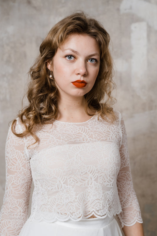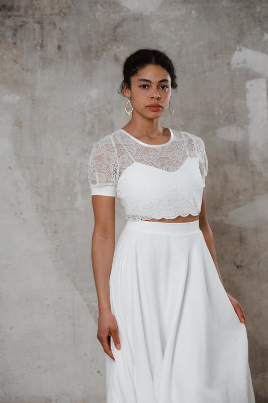 Brauttop "Melody" Croptop mit Spitze Größe M
